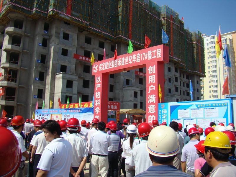 2010年7月20日,由市建設(shè)局安監(jiān)站在華北電力大學會議室組織召開了建設(shè)系統(tǒng)安全文明施工現(xiàn)場會。會議有省、市安監(jiān)站領(lǐng)導(dǎo),市、縣、區(qū)建設(shè)局、安監(jiān)站主要領(lǐng)導(dǎo),全市及駐保主要建筑施工企業(yè)負責人參加。集團六公司世紀華庭17號樓項目部被選為與會人員參觀的樣板項目部。