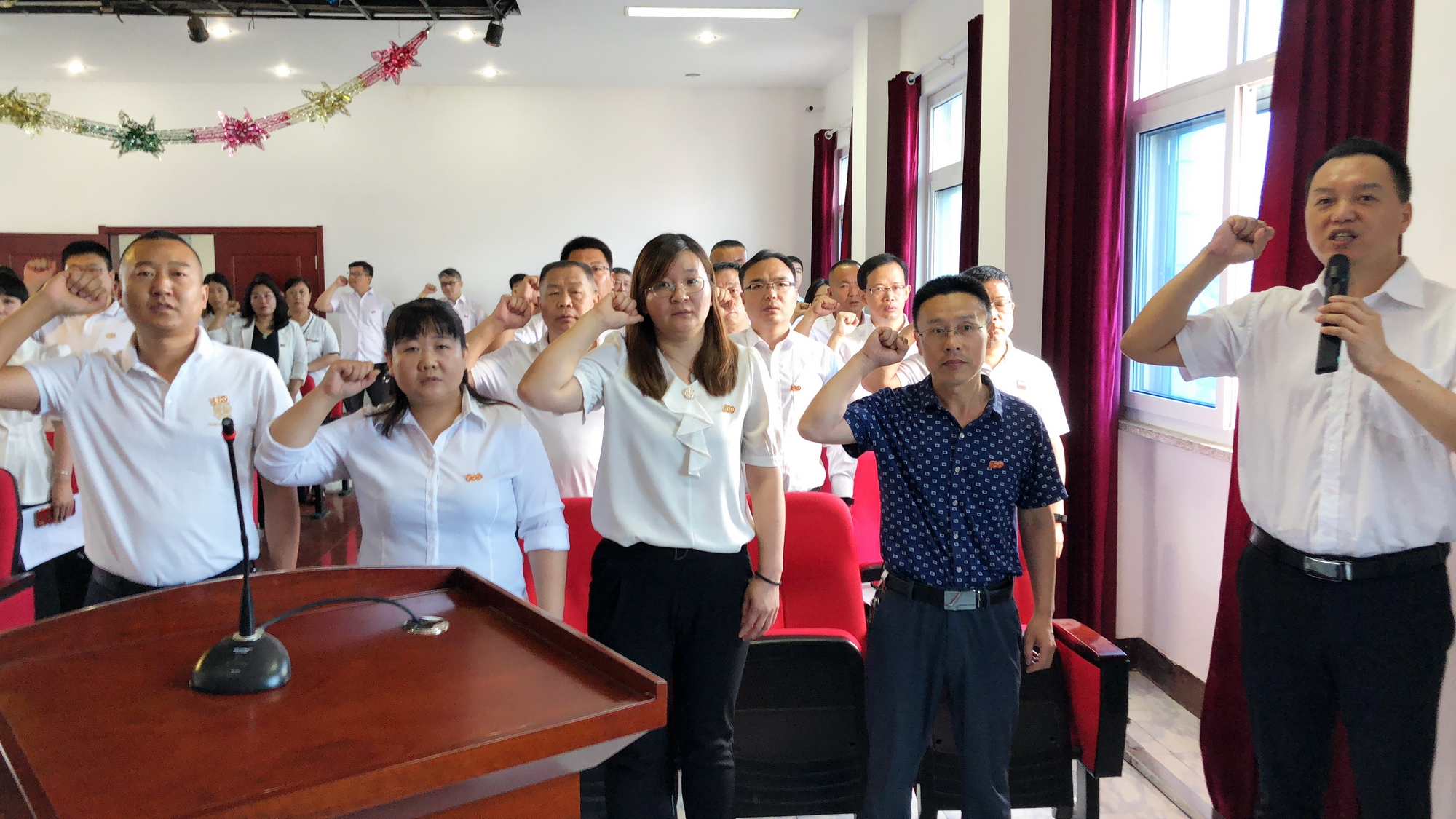集團黨委委員張軍輝帶領新黨員入黨宣誓,與會黨員一起重溫了入黨誓詞。莊嚴的宣誓聲,響徹耳畔、銘記于心。